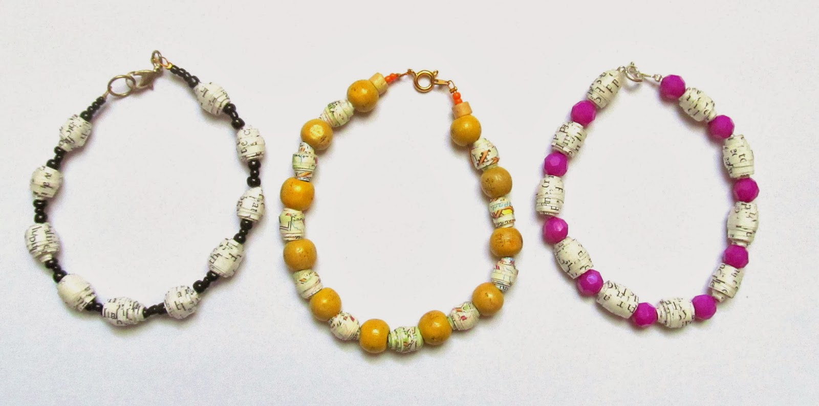 When the bead are dry (I usually leave them overnight) they'll be harder and stay in place. Take them off the cocktail stick and they're ready to use!Turning Paper Beads into Jewellery