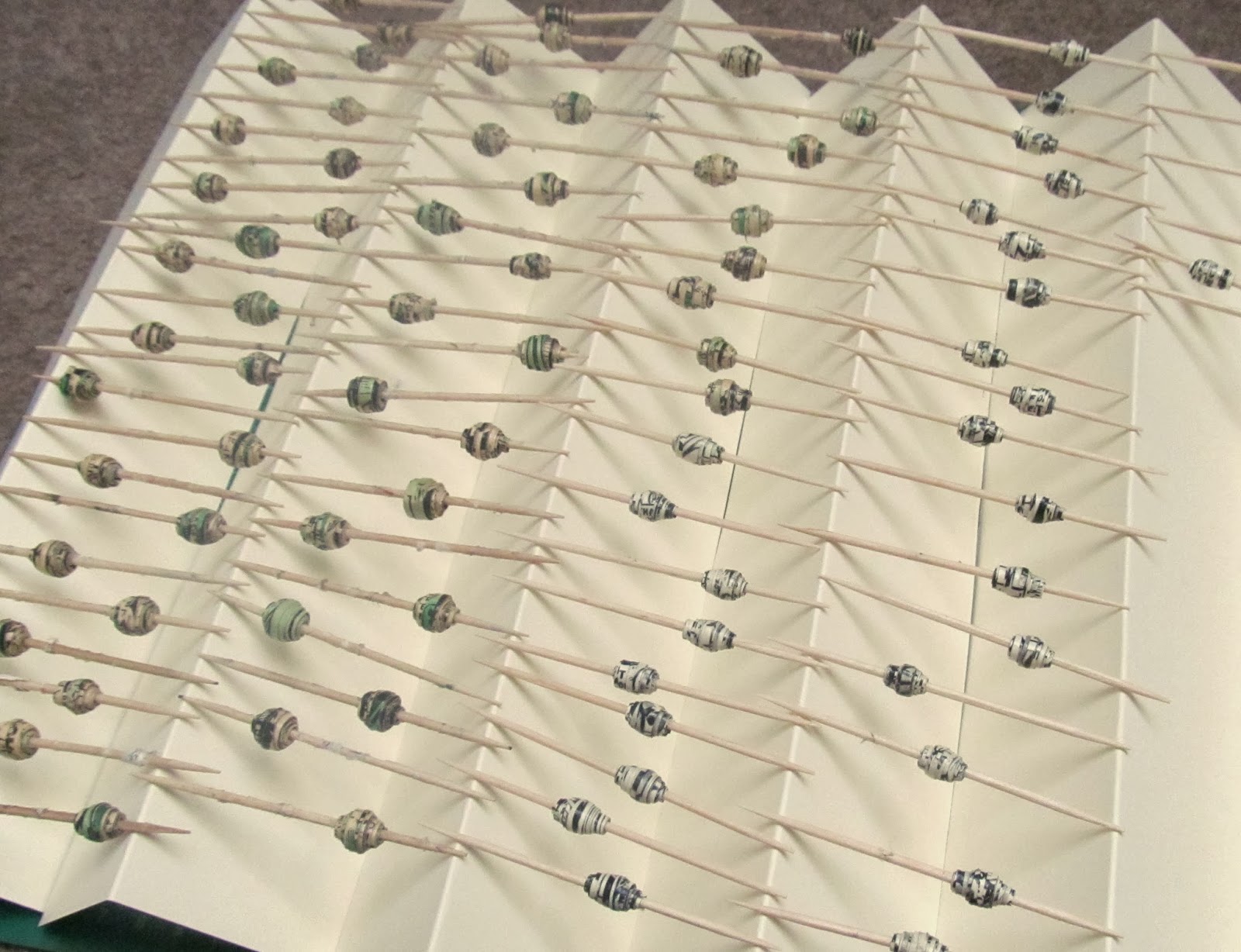 Cardboard - I use lengths of card folded and stood up (see the pictures below) to stand the beads on to dry. Any card will do. Do this before you start making the beads.