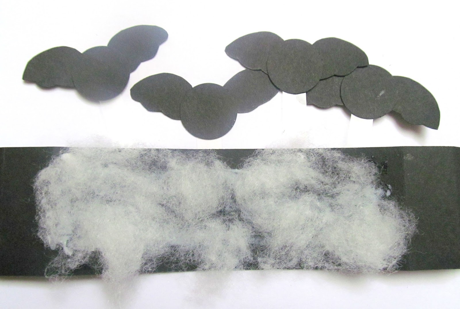 Draw around this template 8 times on the piece of black card that is 6x18cm. Cut out the wings.
