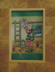 When I used to have more time (and patience) I used to love doing cross stitching. I have quite a few decorations and pictures that are stitched but this little elf getting ready for Christmas is my favorite. It was part of a larger pattern of Santa's workshop which was then made into a stocking, but I didn't have the time to complete the whole project so I just took part of the pattern to make this picture.